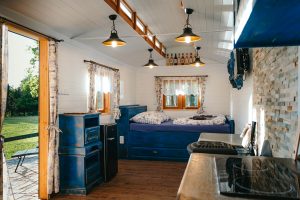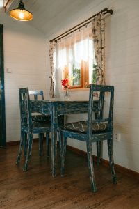 Chata je plně vybavena. Vnitřní posezení, vybavený kuchyňský kout s patřičným vybavením potřebným pro přípravu jídla, ( veškeré kuchyňské nádobí, indukční dvouplotýnka, rychlovarná konvice, lednice s malým mrazákem). Topí se dřevem v krbových kamnech, příjedete do vyhřáté chaty, pak už si přikládáte dle potřeby sami., dřevo v ceně. Koupelna vybavena sprchovým koutem a záchodem, teplá voda samozřejmostí 🙂 Televize a internet.